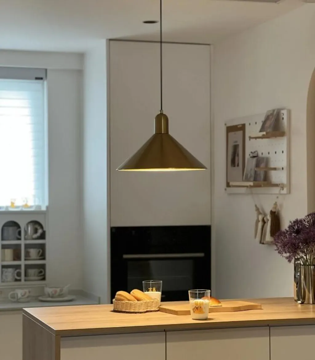 Diese moderne Pendelleuchte in Hutform vereint dekoratives Design mit funktionaler Beleuchtung. Der Metallrahmen und das lichtstreuende Acrylglas sorgen für eine gleichmäßige Ausleuchtung von Esszimmern und Kücheninseln. Erhältlich in Weiß, Schwarz und Gold, spendet diese Leuchte warmes Licht und passt perfekt zu modernen Interieurs.